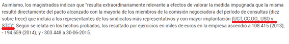 En este extracto sacado de la sentencia se puede ver como se justifica que la salida de los 1500 trabajadores repercutirá de manera positiva en el futuro de la empresa, si sobran 1500 trabajadores, ¿Por qué se compra una empresa con 6500 trabajadores? ¿Por qué se contrata a 2000 becarios? y todo esto antes de terminar el ERE.