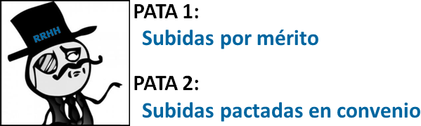 Os presentamos la teoría de las «dos patas», pues eso es lo que tiene la política salarial de la empresa, dos patas, como una persona o una gallina. ¿Y cuáles son?