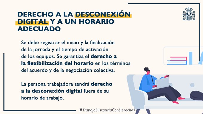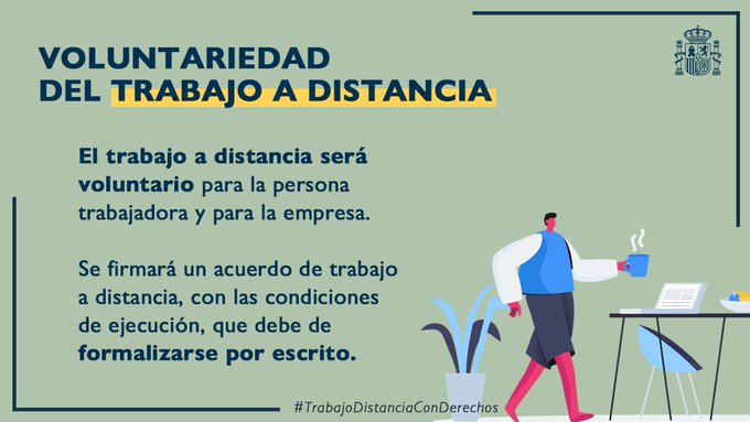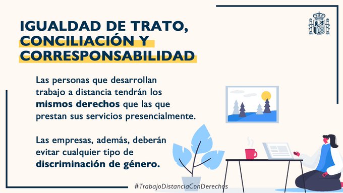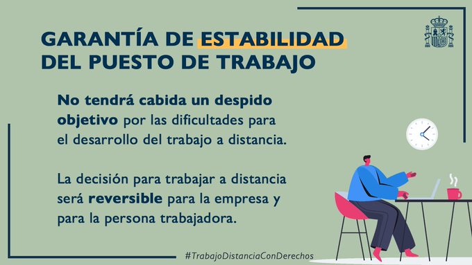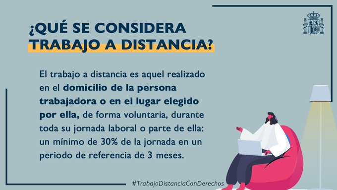 El Ministerio Trabajo y Economía Social ha publicado este resumen gráfico el contenido del Real Decreto-Ley de Trabajo a Distancia: