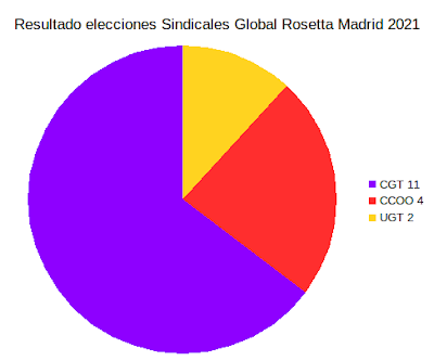 En cualquier caso CGT ha sido la lista más votada, con más del 60% de los votos, hemos obtenido 11 de las 17 delegadas, CCOO 4 y UGT 2. No ha habido ningún voto en blanco ni nulo. Esperamos que esto suponga un aire nuevo al trabajo que tenemos que realizar desde la RLT y podamos luchar por los derechos de todas nosotras.